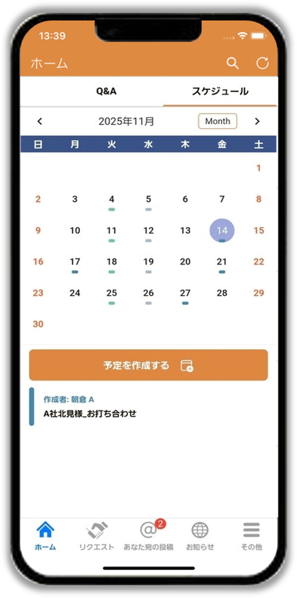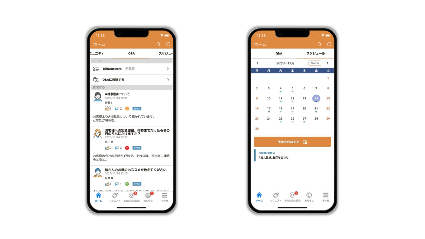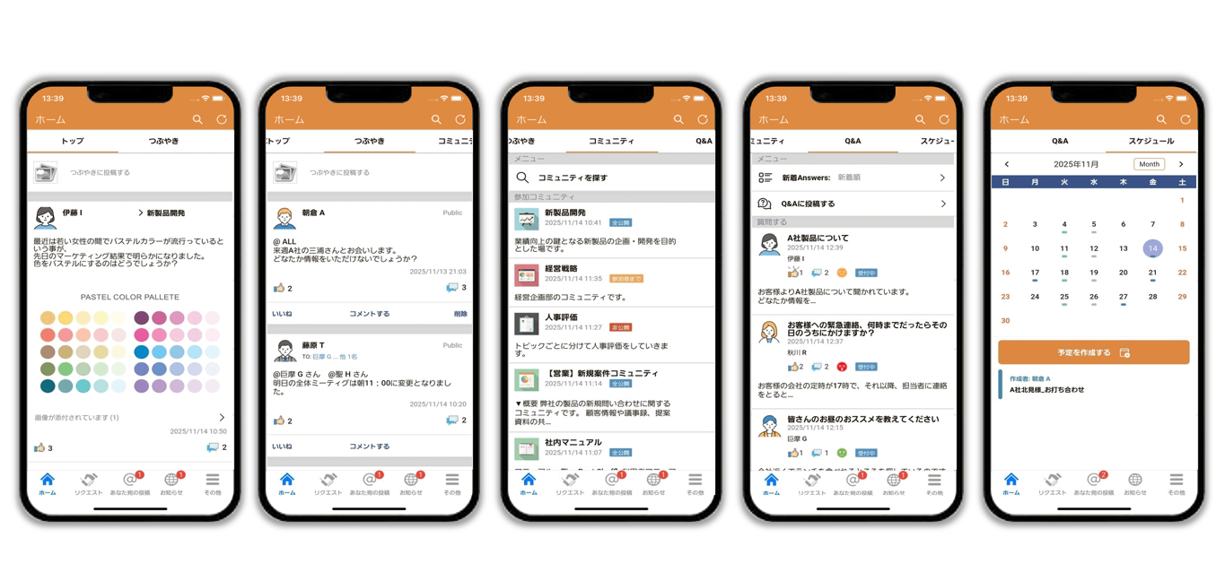 「つぶやき」「コミュニティ」「Q&A」「スケジュール」