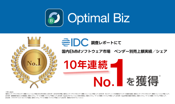 MDM・PC管理サービス「Optimal Biz」、 10年連続国内EMMソフトウェア市場売上シェアNo.1を獲得