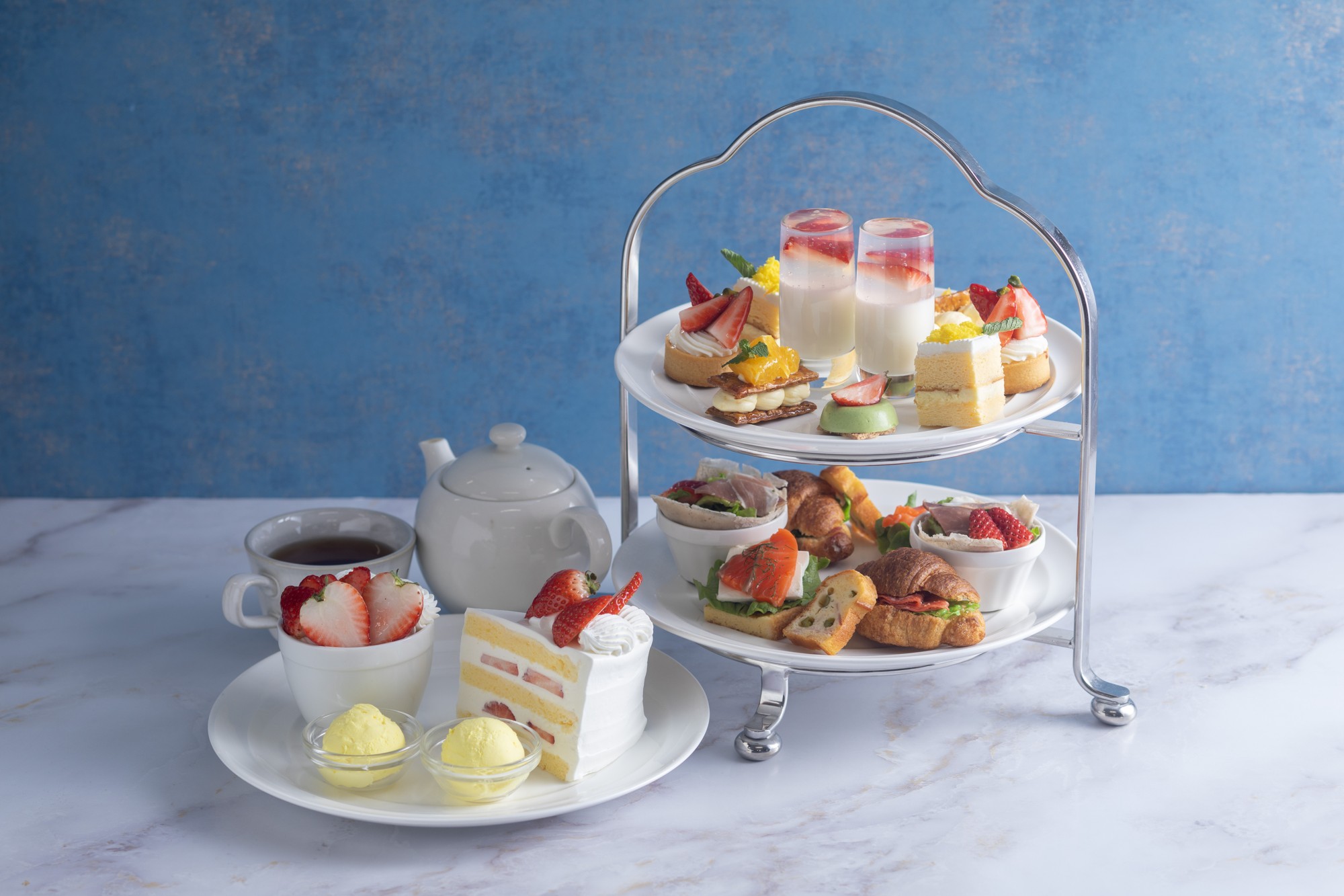 4月のアフタヌーンティーのテーマは【Spring Bloom】。甘酸っぱいいちごや日向夏など、春を告げるフルーツを様々な味わいでご提案。