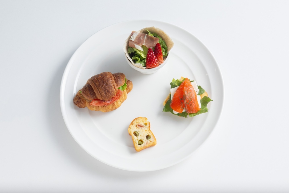 日光そばのミニサラダガレット、ヤシオマスとクリームチーズのフレンチトースト、アスパラガスとベーコンのケークサレ、クロワッサンサンド