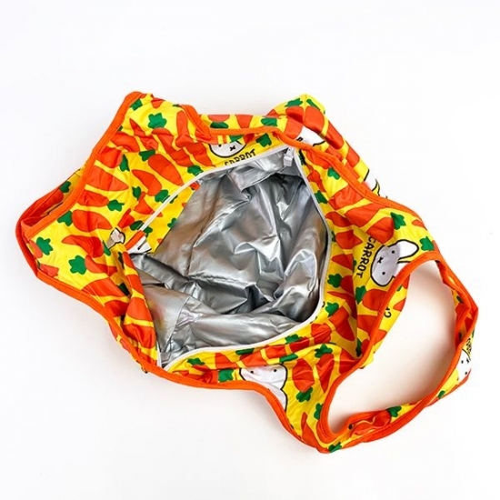 世界中の沢山の人に人気なミッフィーからニンジンのエコバッグが新登場!コンパクトに収納できるとても便利なエコバッグです。簡易的な保温・保冷の仕様となっており、近くのスーパーへのお買い物に便利です◎丈夫で手触りの良いナイロン生地で制作されており、内側は二層構造で保温効果もあります。バッグの内側に小さいポケットが付いており、ティッシュやカード、鍵などの小物を入れるのに最適です!2リットルのペットボトル6本が楽々入る大きさです。とっても可愛いのでプレゼントにもピッタリです♪