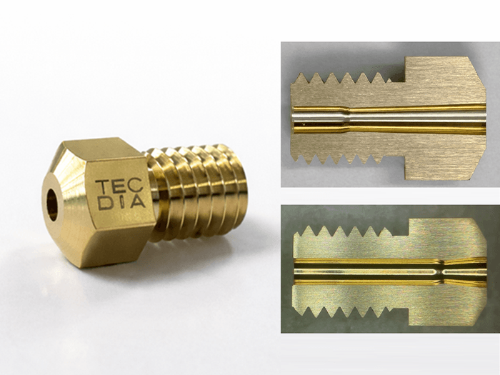 ※吐出口径および内部形状をミクロン単位で管理した“精密ノズル”として設計された、1.75mmフィラメント対応2mmノズルは、当社調べ(2026年1月時点)において世界初。