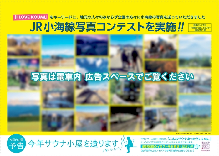 これまでにない試みにより、通勤や通学で小海線を利用する乗客の皆さんや写真コンテストに応募いただいた方にも楽しんでいただける催しになると考えております。GW中に沿線地域に訪れる方々にぜひご覧いただきたいと思っております。小海線全車両の広告スペースを利用して、どの列車からもご覧になれます。