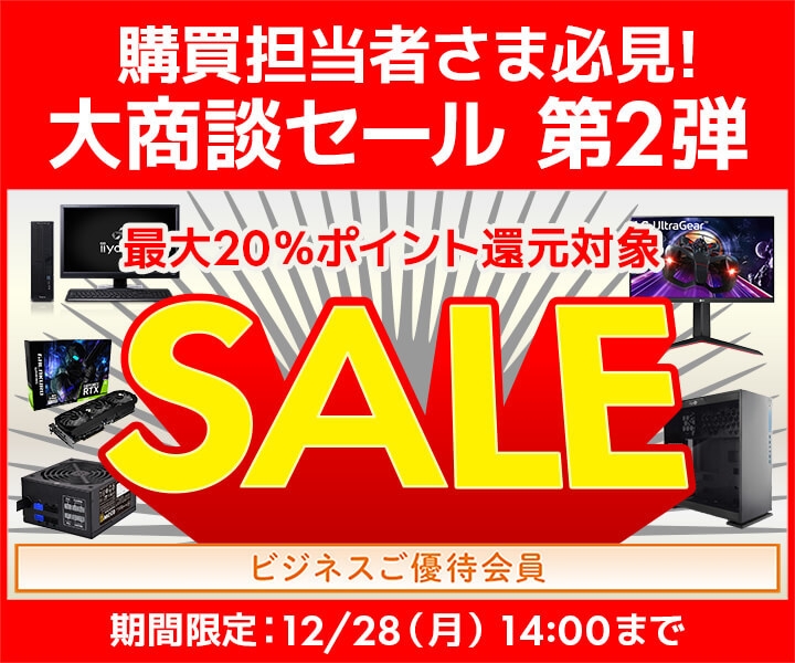 令和2年も残りわずかとなりました!よい新年を迎えられるようにお早目のご準備を!ビジネスご優待会員サイトでは人気の商品盛り沢山な『ビジネスご優待会員 大商談セール 第2弾』を開催。おすすめのBTOパソコンが多数セール対象に。さらにPCパーツ・周辺機器もプライスダウン!是非この機会をお見逃しなく!
