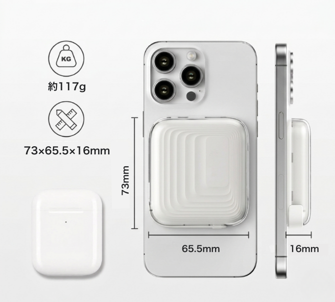 軽量かつコンパクト設計で、ポケットや小型バッグにも収まりやすいサイズ感です。