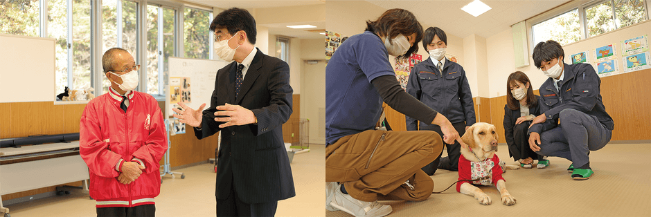 当社では以前より視覚障がい者の方への支援に力を入れており、特に盲導犬育成の推進のため、盲導犬協会の方々との交流を続けてまいりました。