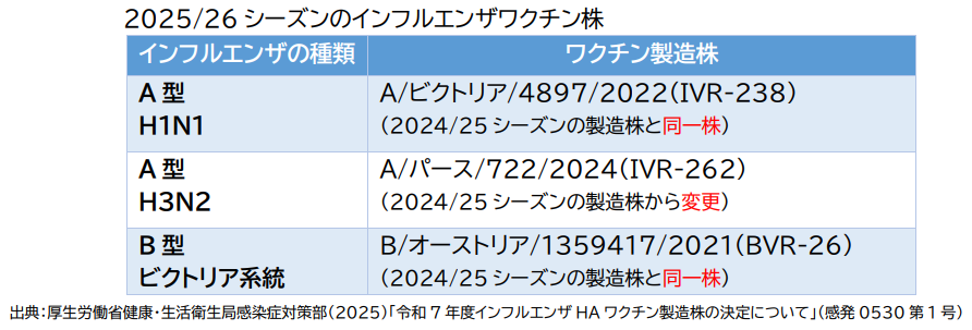 厚生労働省推奨のインフルエンザ感染対策にワクチン接種があります.実はインフルエンザワクチンの種類は毎年異なることをご存じですか?