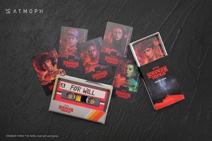 パッケージの中には、メインキャラクターがそれぞれデザインされた6種類のカードのうち1枚がランダムに梱包されています。カードに印字されている数字をAtmoph Window 2に入力すると、 『ストレンジャー・シングス 未知の世界』の中から、AtmophがオリジナルCGで再現した3シーンの風景が開放される仕組みになっています。特別パッケージは数量限定のため、お早めにご注文ください。