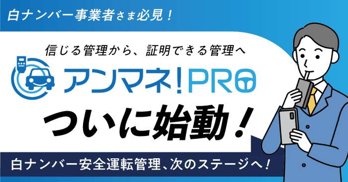 白ナンバー事業者様必見!信じる管理から、証明できる管理へ 白ナンバー安全運転管理、次のステージへ! アンマネ!PROついに始動 8月4日(月)無料ウェビナー開催
