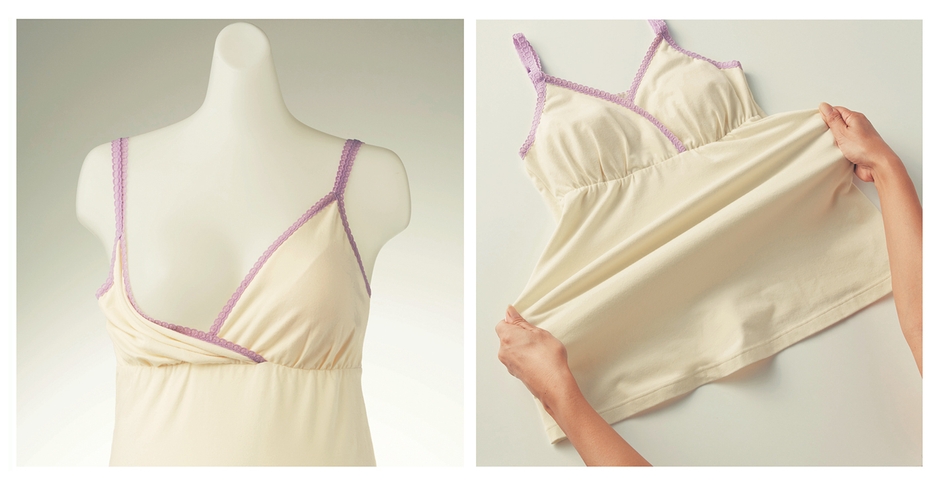 「生まれてすぐの赤ちゃんは1時間おきに授乳が必要で、ママには大きな負担」、そんなお客様の声から2005年に誕生したのが、胸元だけを片手でさっと開くことができ、素早くラクに授乳ができる「瞬間授乳クロスオープンキャミソール」です。この商品は、デザインやカラーを少しずつリニューアルしながら販売を継続しており、販売開始から15年経った今もなお、ママに絶大な人気を誇る商品です。