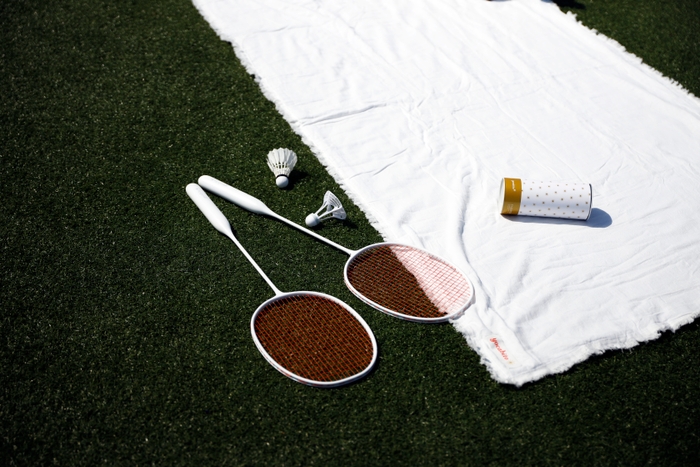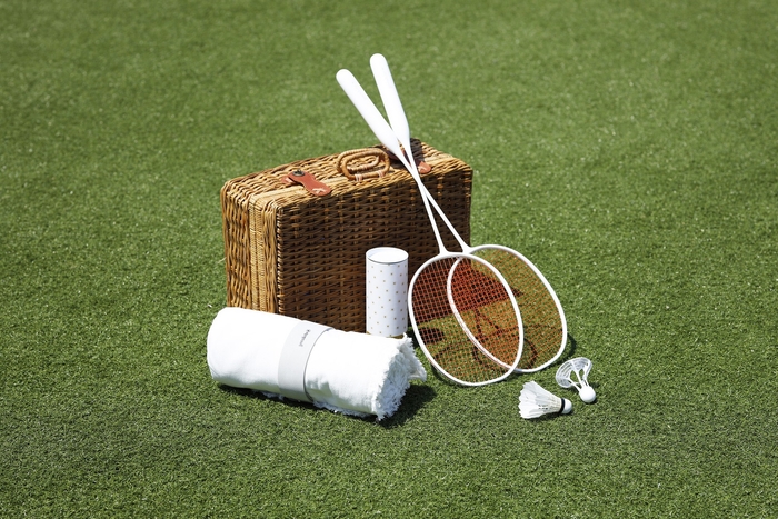 デザイナーズ・バドミントン「VALENCIA」と、コットンリネンのピクニックシート「HEIDI」がセットに。 気分が高まる、おしゃれピクニック体験を提案