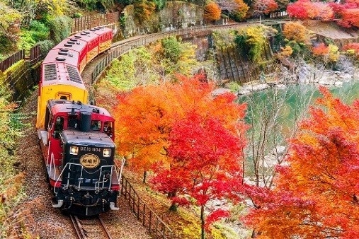 嵐電と嵯峨野トロッコ列車でこの秋の京都観光をぜひお楽しみください。