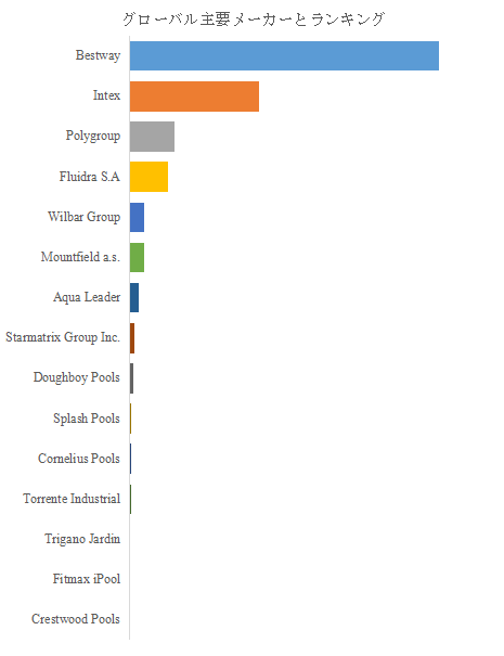 市場における競争構造は明確であり、Bestwayが世界最大手として確固たる地位を築いている。同社は高いコスト競争力と幅広い製品ラインを有し、家庭用市場から商業用まで多層的に展開している。次にIntex、Polygroupが続き、量販・オンライン両チャネルに強みを持つ体制を確立している。欧州勢ではFluidra S.AやWilbar Groupが堅牢なブランド力を保持し、デザイン性や耐候性能を軸に高付加価値市場を開拓している。