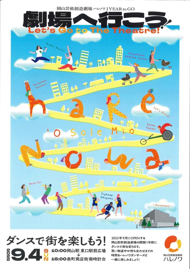 岡山芸術創造劇場ハレノワ 開館1年前カウントダウン企画 『劇場へ行こう!』いよいよ9月4日(日) 開催! ~岡山駅から表町商店街をダンスで盛り上げます~