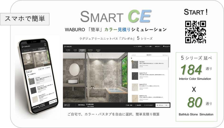 スマホで簡単、WEBで完結! アステック高級規格型「WABURO」ユニットバスの カラー見積りシミュレーション『 SMART CE 』を提供開始