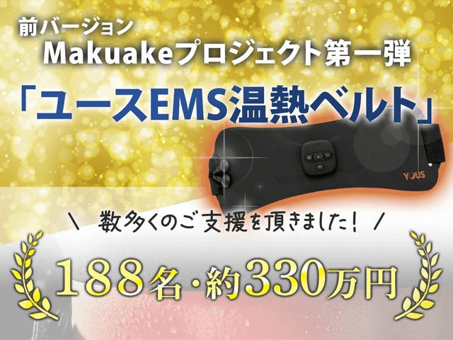 ジェルパッド不要の「ユースPlus EMS近赤外線温熱ベルト」が Makuakeにて3月30日まで先行販売中!