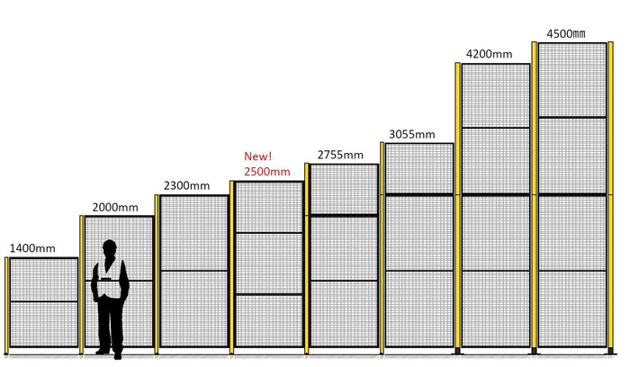 なお2,500mmの標準パネルは、メッシュ、プラスチック、スチールの各三種となり、工作機械の搬送アプリケーションに最適な高さです。