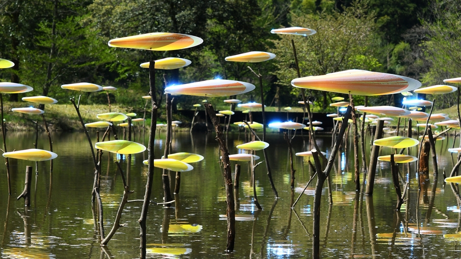 新緑の季節である5月、遊歩道を歩き、公園内に広く仕掛けられたモビールをめぐって作品鑑賞をお楽しみいただけます。作品を介して、自然の美しさや力を感じてみてください。