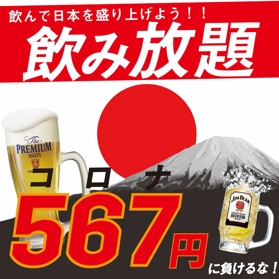 ついに長かった緊急事態宣言が解除されます。まだまだ油断はできませんが、我々飲食業界ができることは飲食を通じて笑顔になってもらう。ただそれだけです。営業を自粛するのではなく、感染予防を徹底して感染リスクを最大限減らし、皆様が少しでも楽しんでもらえるような場所を提供したい。そんな思いで今回の90分40種類飲み放題567円というキャンペーンを実施することに致しました。