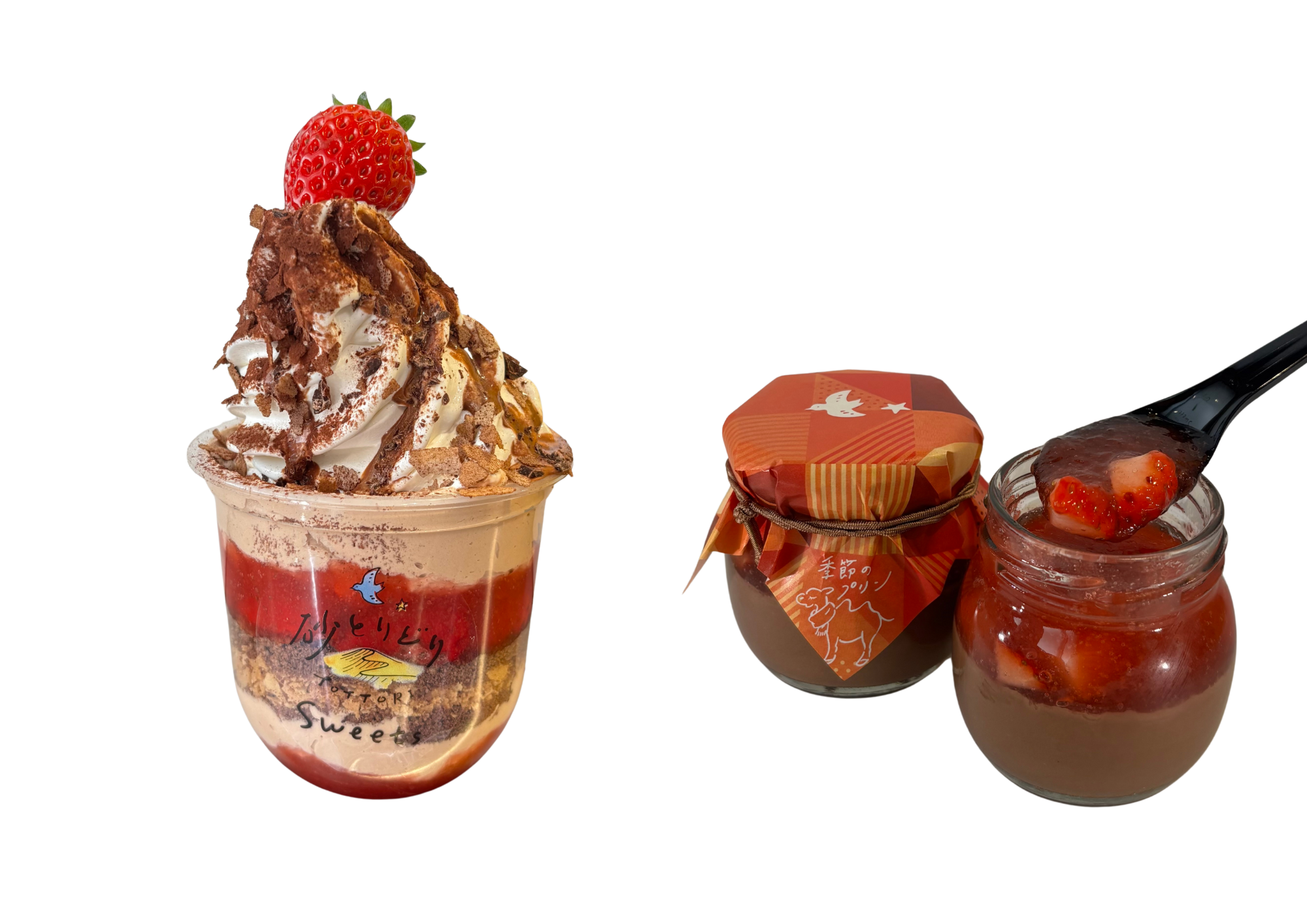 2026年2月11日(水)から、ねばりっこ食堂、砂とりどりSweetsより、いちご好きにはたまらない、いちごとチョコの今の季節ならではのスイーツが登場!見た目も味も楽しめるいちご尽くしのスイーツです。