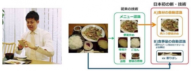 今回のアップートでは、人工知能(AI)技術を活用し、写真を撮るだけで材認識・食事の量認識を行う日本初の機能が搭載され、利用者の手間を省いた「写真を撮るだけで食事アドバイス」が実現しました。