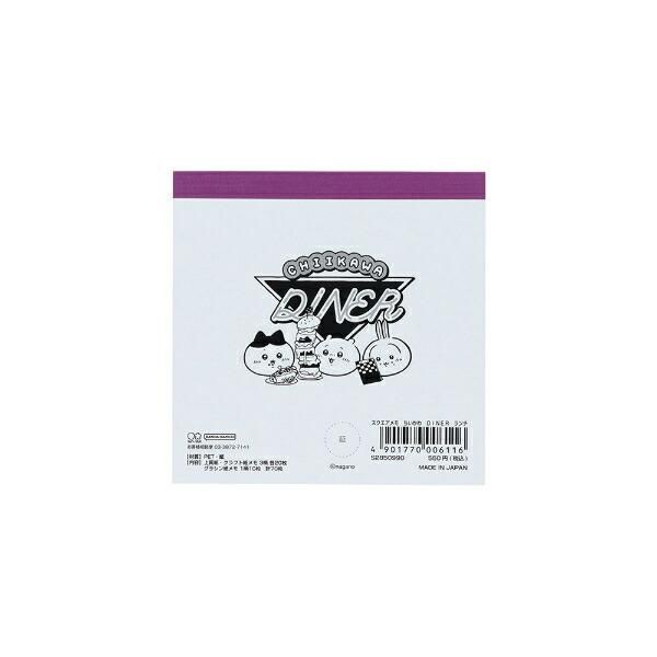 お次にご紹介するのは、「ちいかわ ランチ スクエアメモ 文具 日本製」。【内容】上質紙本文:2柄各20枚、クラフト紙本文:1柄20枚。サイズ:9cm×9cm×0.8cm。素材:紙、PET。