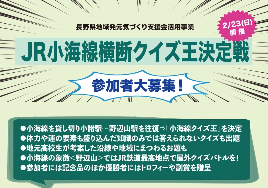 「JR小海線横断クイズ王決定戦」参加者募集!