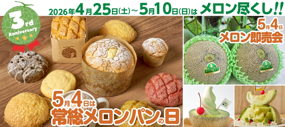 茨城県・常総市の魅力を発信する食のテーマパーク「道の駅 常総」(所在地:茨城県常総市、運営:株式会社COLLECT)は、2026年4月28日(火)で3周年を迎えます。そこで、2026年4月25日(土)~5月10日(日)の16日間、『3周年祭』を開催いたします。これから最盛期を迎える“メロンの魅力”を存分にご堪能いただける、限定コンテンツを多数ご用意いたしました。