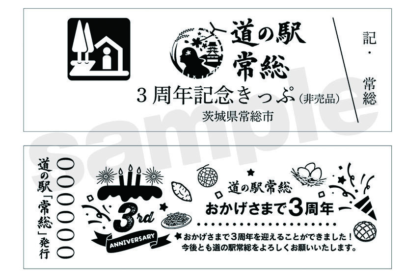 道の駅常総の3周年を記念して、道の駅切符が限定デザインで登場します。300枚限定となりますので、お早めにゲットしてください!