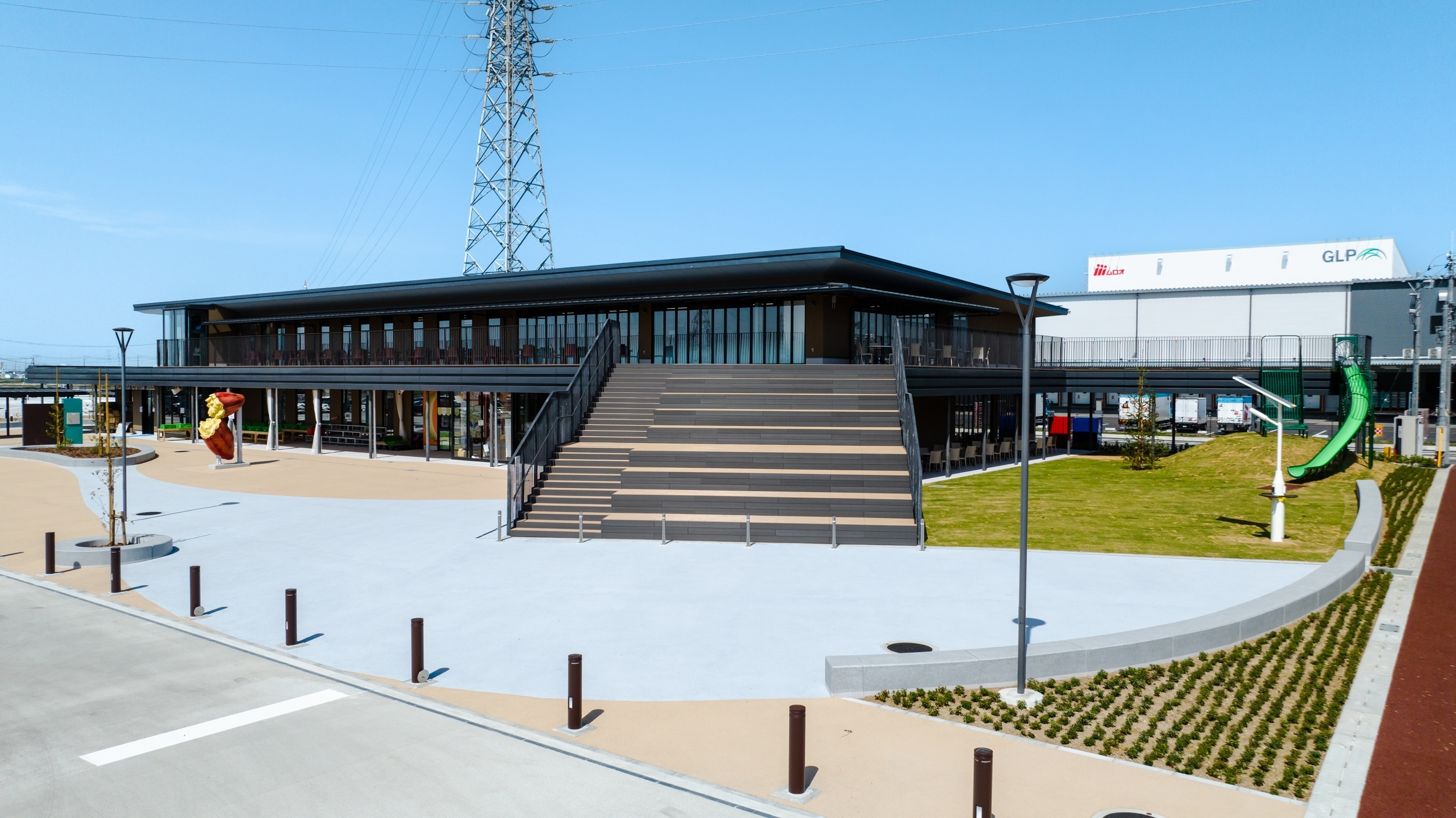 芝生広場、ベビーコーナー、非常用電源、貯水槽、公衆無線LAN、