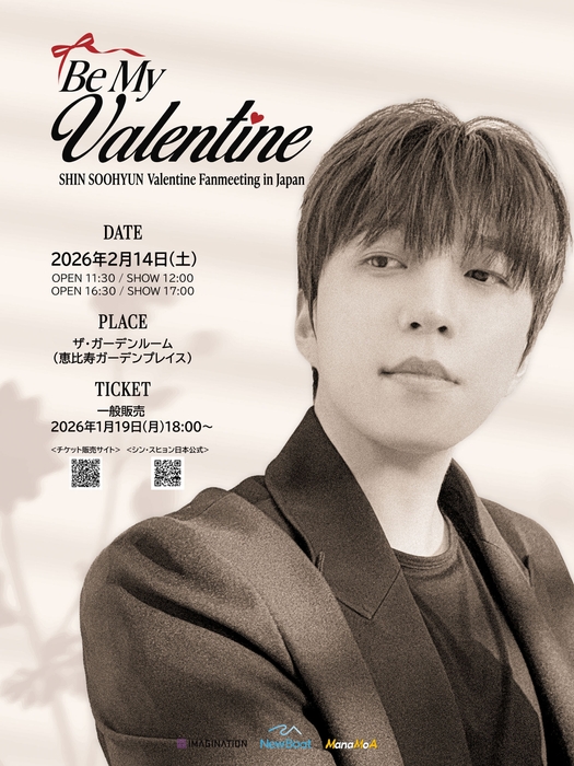 韓国アーティスト・SHIN SOOHYUN(シン・スヒョン)が、2026年2月14日(土)に東京・恵比寿にて開催する特別なファンミーティング「SHIN SOOHYUN Valentine Fanmeeting in Japan <Be My Valentine>」のチケット一般発売が2026年1月19日(月)18:00より開始されることが決定いたしました。