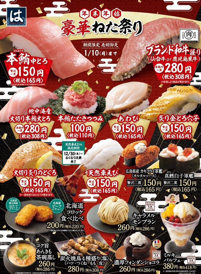 ぜひこの機会にお近くの「はま寿司」で「年末年始 豪華ねた祭り」をお楽しみください。