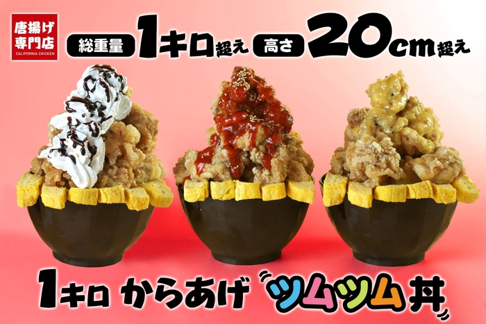 からあげ専門店「カリフォルニアチキン」(本社:大阪市淀川区西中島、代表:直林 浩正)は、自宅で楽しめる「テイクアウト」「デリバリー」メニューの人気に伴い、2021年7月20日より、デカ盛りからあげ「1キロからあげ ツムツム丼」を発売します。