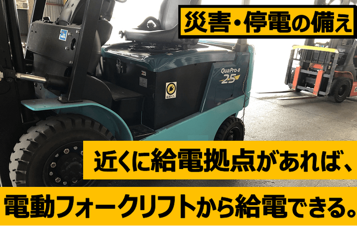 *電気自動車による災害時の給電利用を法人が使用する電動フォークリフトでCSRとして実現