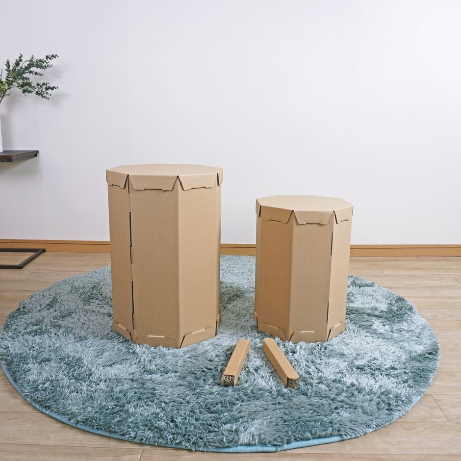 (2) 一般的な段ボールを使用。軽くて柔らかく怪我をしにくい