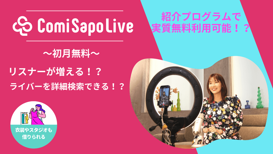 <初月無料>ライブ配信者向けのコミュニティサイト 「ComiSapoLive」がオープン!衣装&スタジオのレンタルも可能