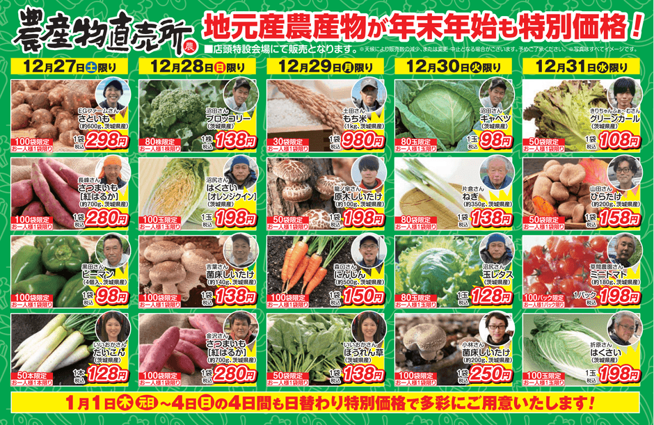 ■地元農産物:年末年始特別価格で大奉仕