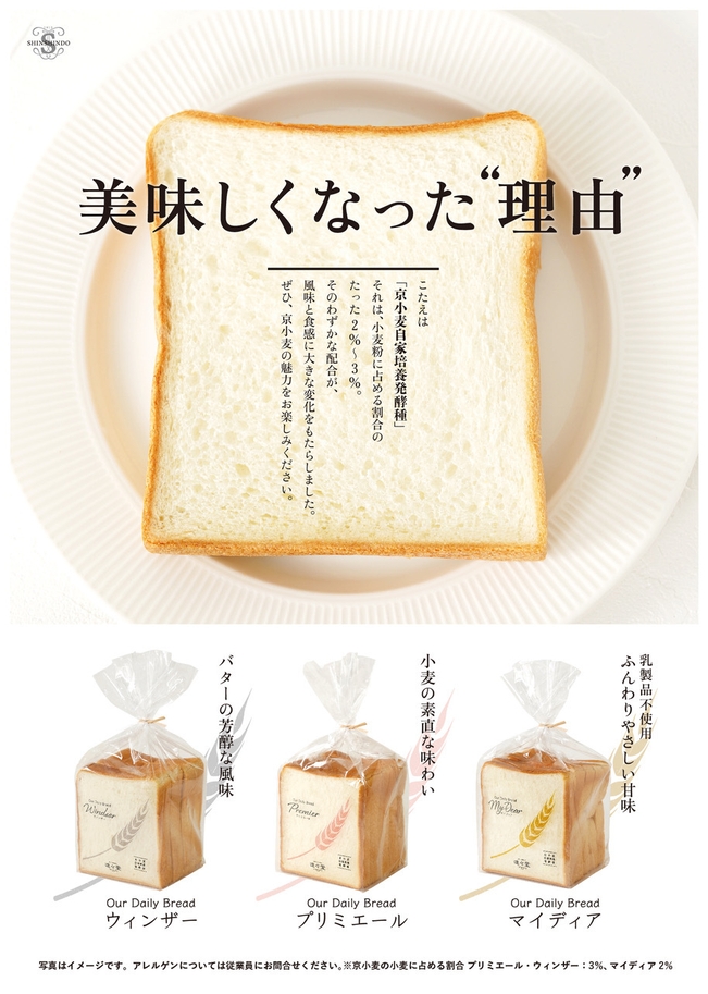 新しい「デイリーブレッド」には、京都産小麦を使った「京小麦自家培養発酵種」を配合しました。