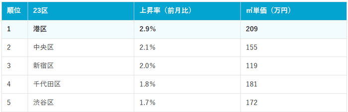 たとえば、千代田区や港区といった都心部では平均を大きく上回る一方、足立区や葛飾区などでは比較的緩やかな上昇にとどまっています。
