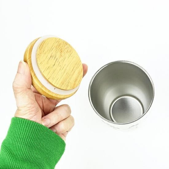 真空の二重構造で、冷たい飲み物を入れても水滴が付かないためテーブルを濡らす心配がありません。木製の蓋はコーティング加工をしているため、熱い飲み物で変形するのを防いでくれますよ。