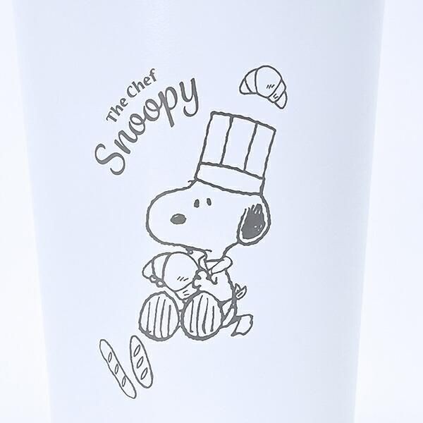 タンブラーはホワイトで、正面に描かれたシェフ姿のスヌーピーのイラストがワンポイント。このシンプルなデザインが、脳の疲れを癒して気分をリフレッシュさせてくれます。