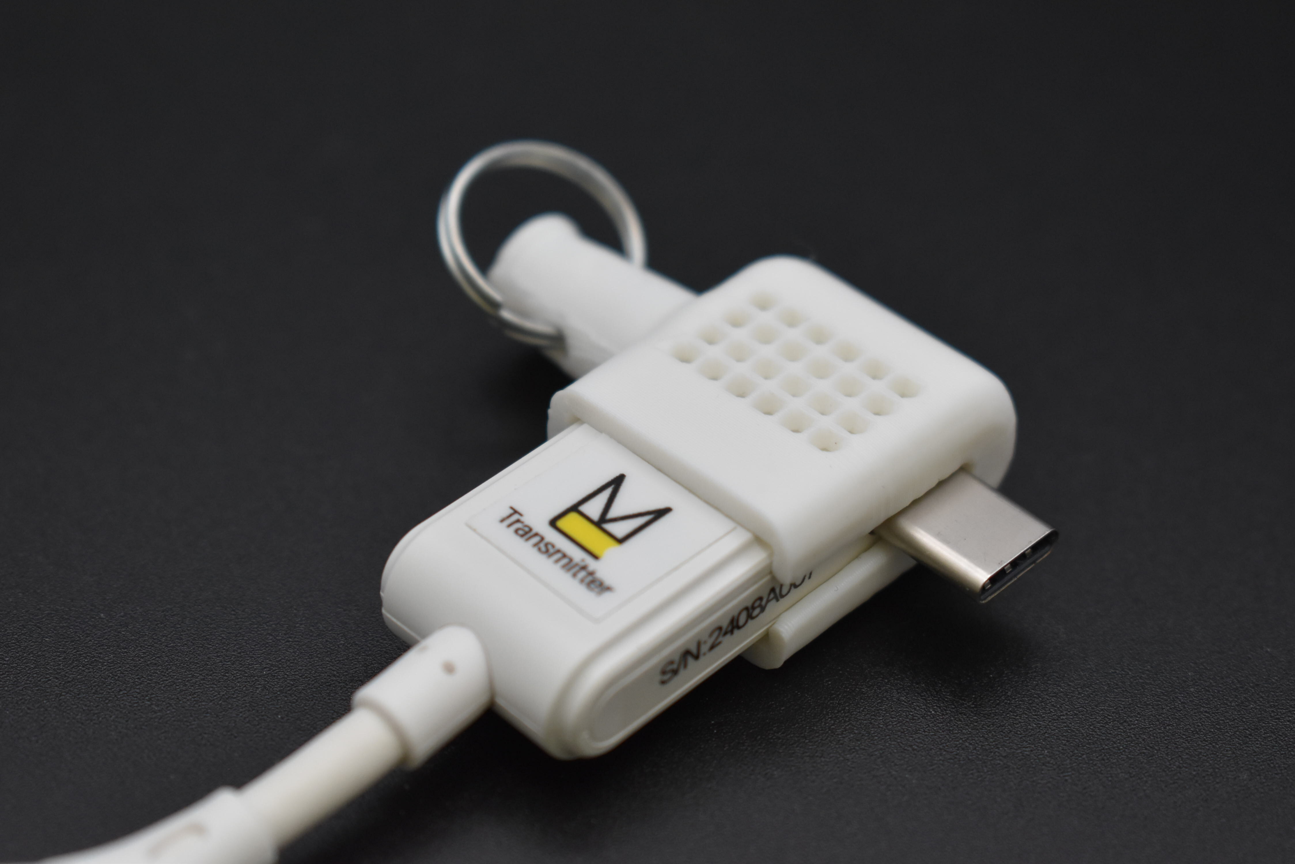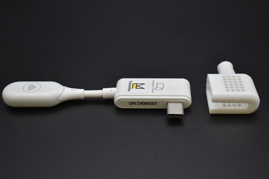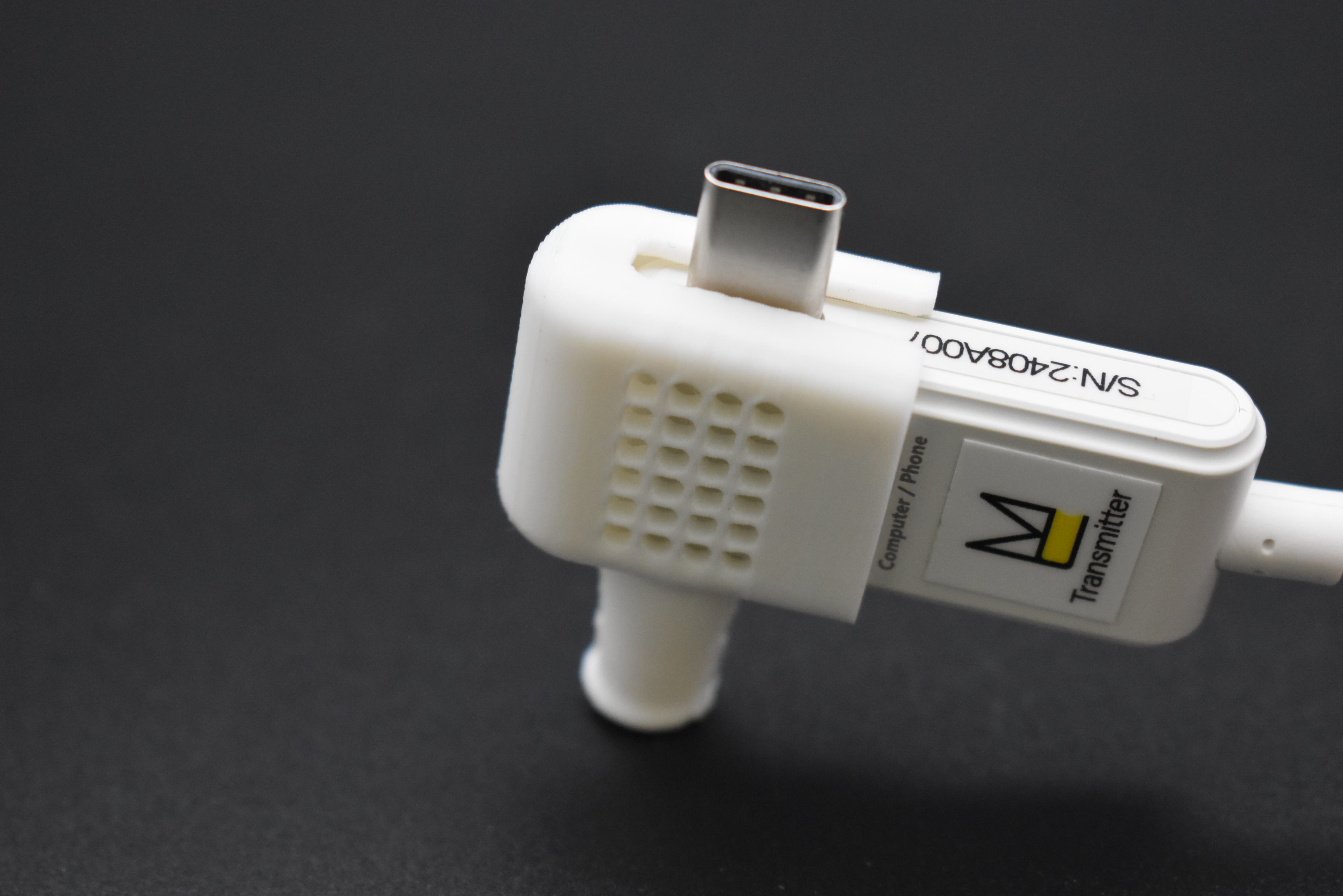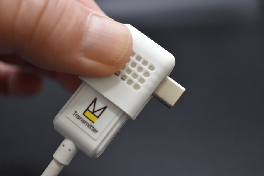 「ホワイトハット」は、送信機(C1)をデバイスから取り外す際、本体に被せることで、USB-C端子の保護に役立ちます。またベンチレーター(通気孔)から熱を逃がすため、指へ伝わる熱さを和らげます。