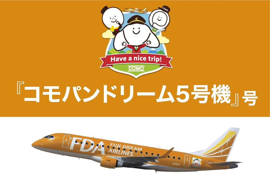 株式会社コモ(愛知県小牧市、代表取締役社長:木下 克己)は、株式会社フジドリームエアラインズ(略称:FDA、本社:静岡県静岡市、代表取締役社長:本田 俊介)とネーミングライツ契約を締結し、2025年9月24日(水)よりオレンジカラーの5号機(JA05FJ)を『コモパンドリーム5号機』として運航開始いたしました。
