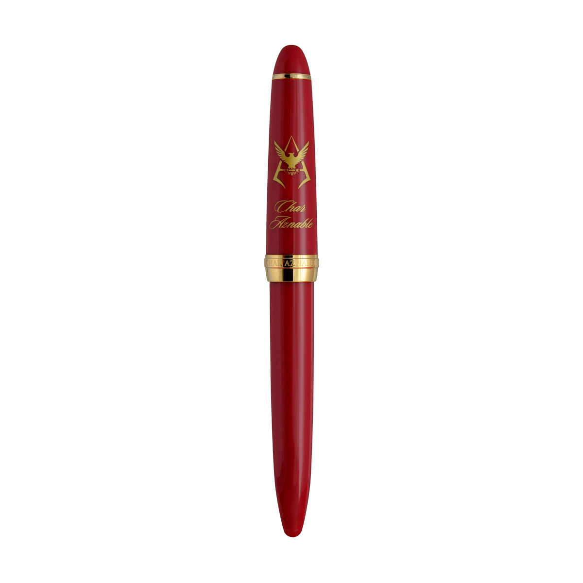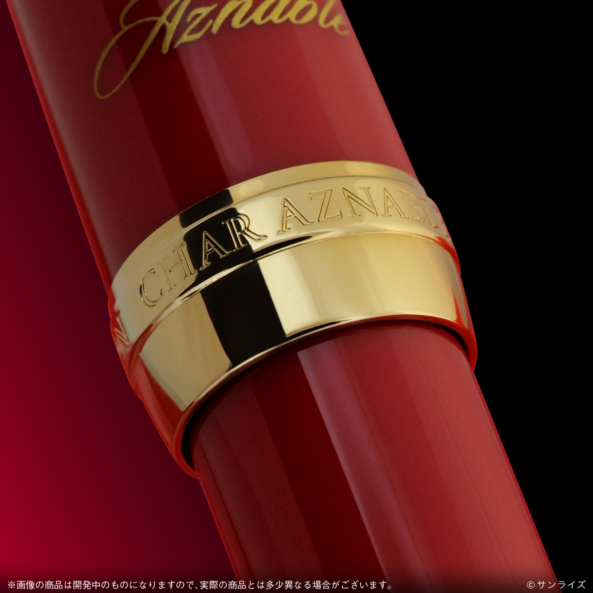 キャップリングには「CHAR AZNABLE」の刻印が施されており、高級感と存在感を際立たせています。