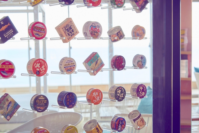 2 100種類の缶詰が並ぶ「カンカンセラー」。 希少部位「まぐろとろ」を使ったツナ缶も。
