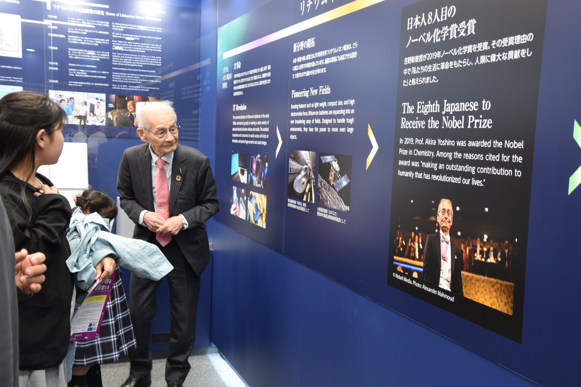 「赤﨑・天野・吉野ノーベル賞記念展示室」を見学 吉野終身教授と記念撮影も
