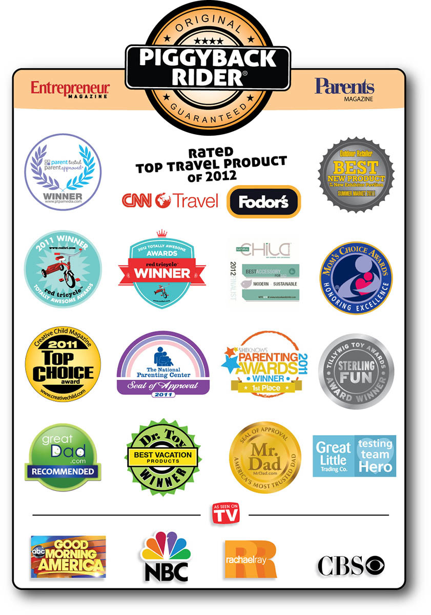 アメリカ発のピギーバックライダーは発売以来、便利な子育てグッズとして子育て部門やトラベル部門など12以上の賞を受賞するなど世界各国で便利な子育てグッズとして評価されています。