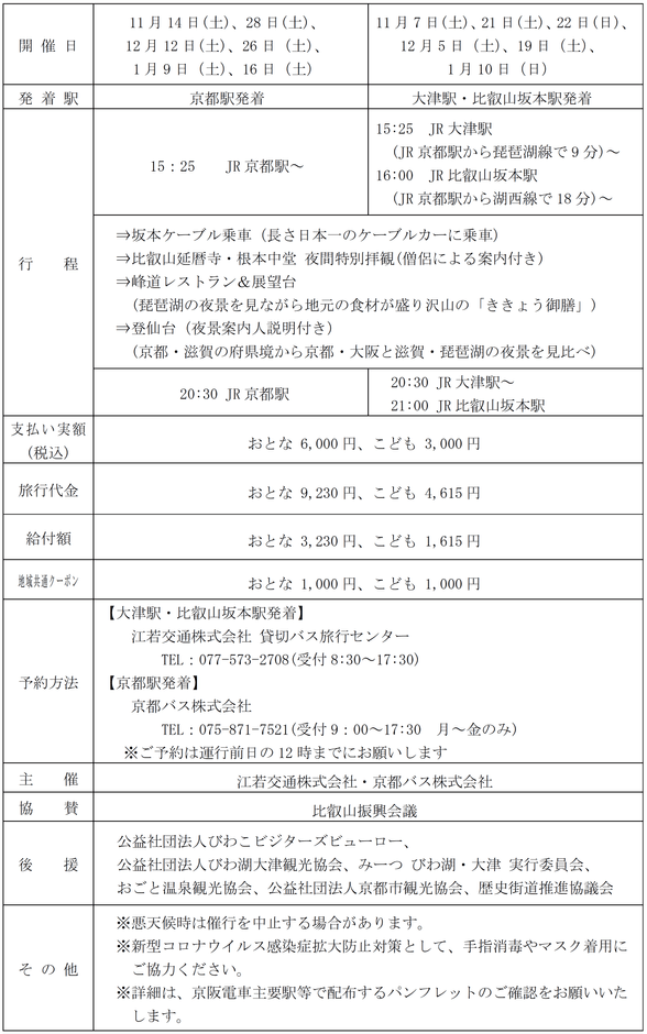 - 「比叡山プレミアムナイトバスツアー」の概要(GO TO トラベル事業支援対象)
