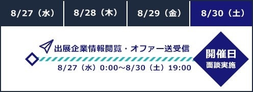※出展企業情報の閲覧・カジュアル面談オファーの送受信:8/27(水)~8/30(土)