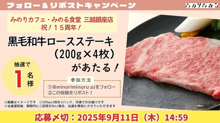 JA全農は、直営飲食店舗「みのりカフェ・みのる食堂三越銀座店」の開業15周年を記念し、9月11日(木)~9月24日(水)の間、「国産黒毛和牛」を使用した特別メニューを提供します。